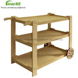 מתלה קומה רב-שכבתית עמדה תצוגת מזון מעץ נייד עם casters קמעונאית ידידותית לסביבה ומארגן חטיף