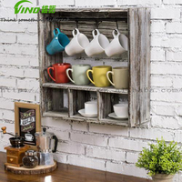 토치드 우드 러스틱 커피 머그 랙 & 다기능 벽 선반 벽걸이형 9컵 수납 거실 도구 및 음식 보관용