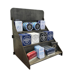 เคาน์เตอร์ไม้แบบพกพาสำหรับวางบนโต๊ะงานฝีมือแบบตั้งได้3ขั้นแสดงเป็นแพ็คแบนแสดงสบู่เครื่องประดับถ้วยเครื่องเทศการแสดงบนโต๊ะแบบขายปลีก